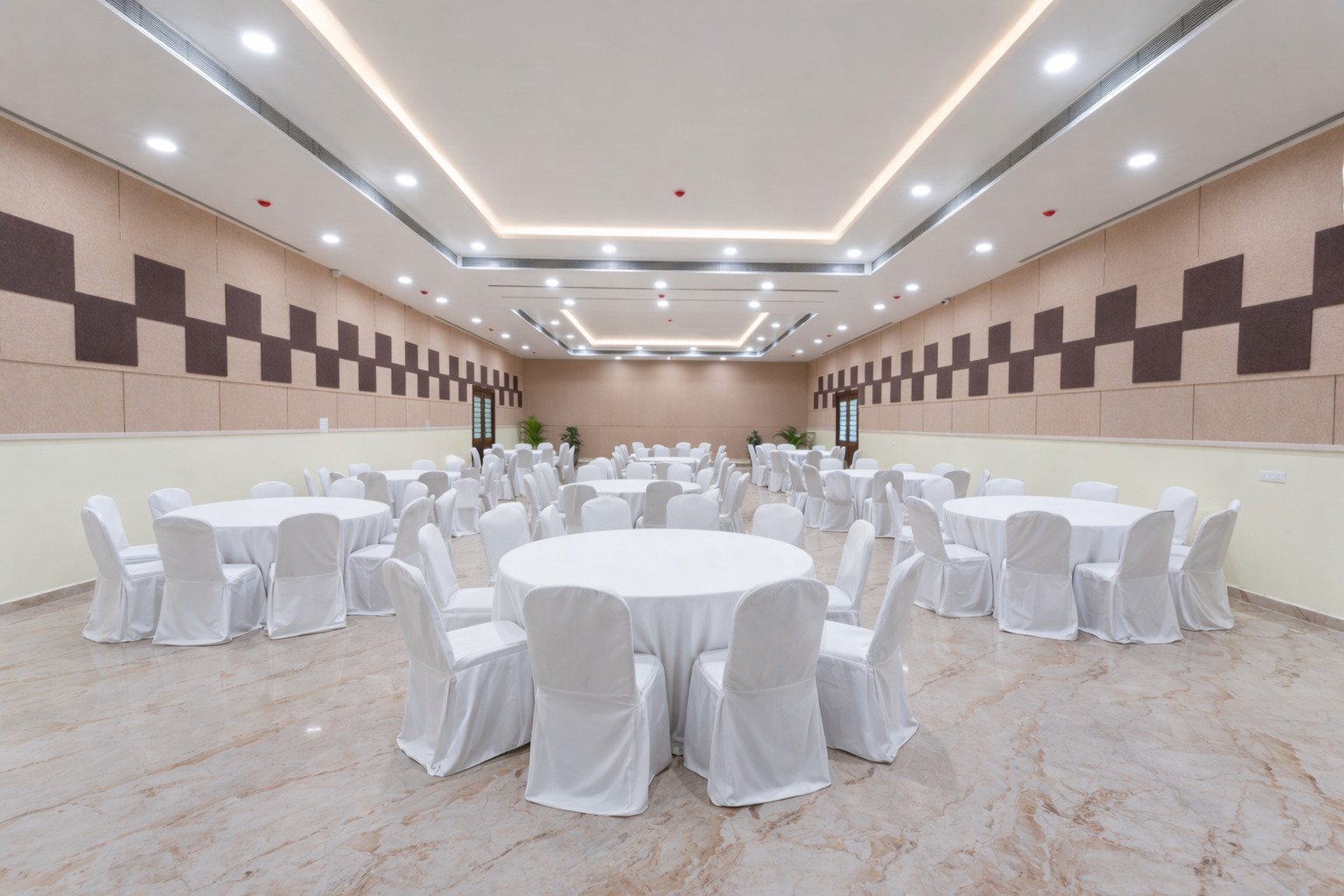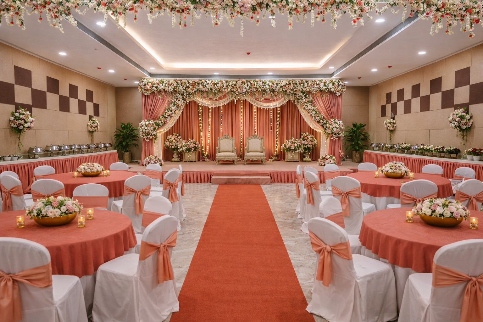 The banquet space offers a well-structured indoor setting that allows elegant décor styling and seamless event flow. It is ideal for intimate to mid-sized weddings, engagement ceremonies, sangeet evenings, and reception celebrations.