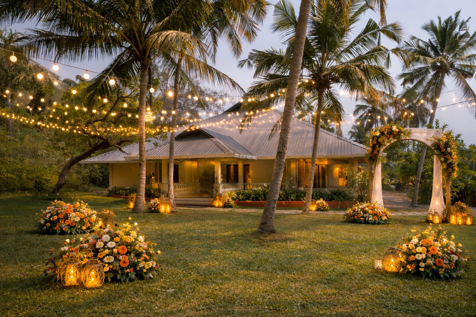 Set amidst open surroundings, the outdoor space offers a refreshing setting for relaxed seating and social gatherings. Whether styled for intimate celebrations or lively functions, it adapts beautifully to varied themes, décor elements, and dining setups-creating a warm, inviting atmosphere under the open sky.